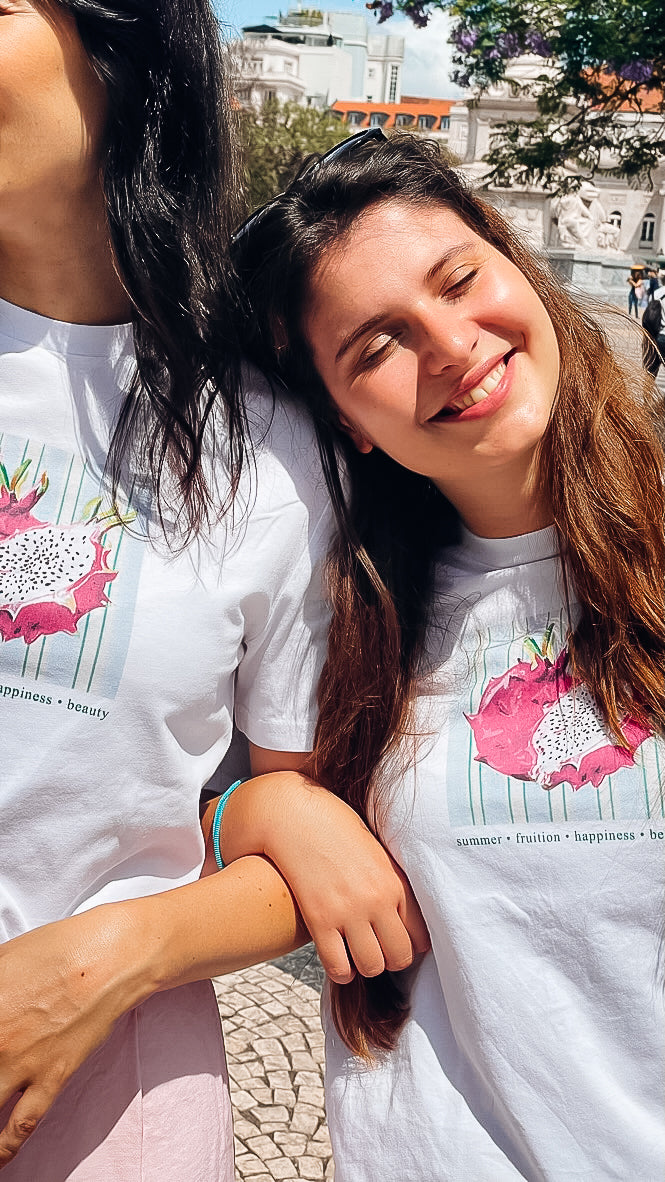 Second, Patrícia has an Italian boyfriend, and the T-Shirt "Vieni qui e Dammi Un Bacio" which means "come here and give me a kiss" is inspired in their love.